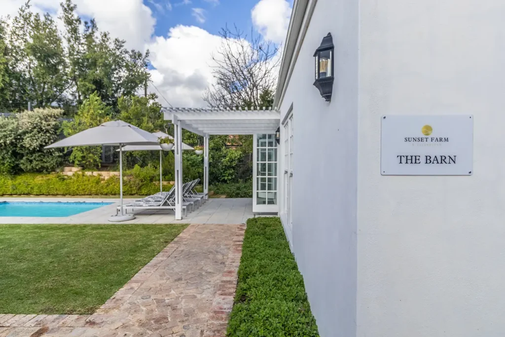 A barn beautifully restored into a tranquil villa. A private pool and a pool house with braai area for up to 6 guests to enjoy. Three bedrooms, 3 bathrooms (2 luxurious king beds, 2 single beds, optional beds together for couples) complete this luxurious and spacious self catering villa.